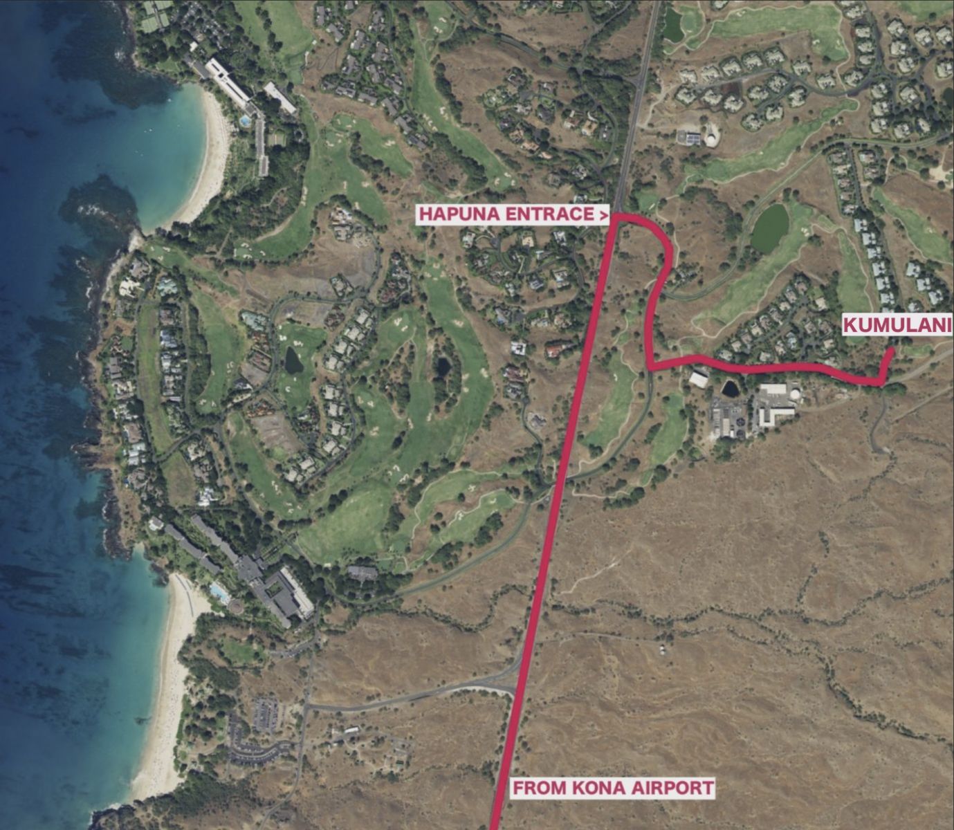 Directions from Kona International Airport to Kumulani at Mauna Kea: